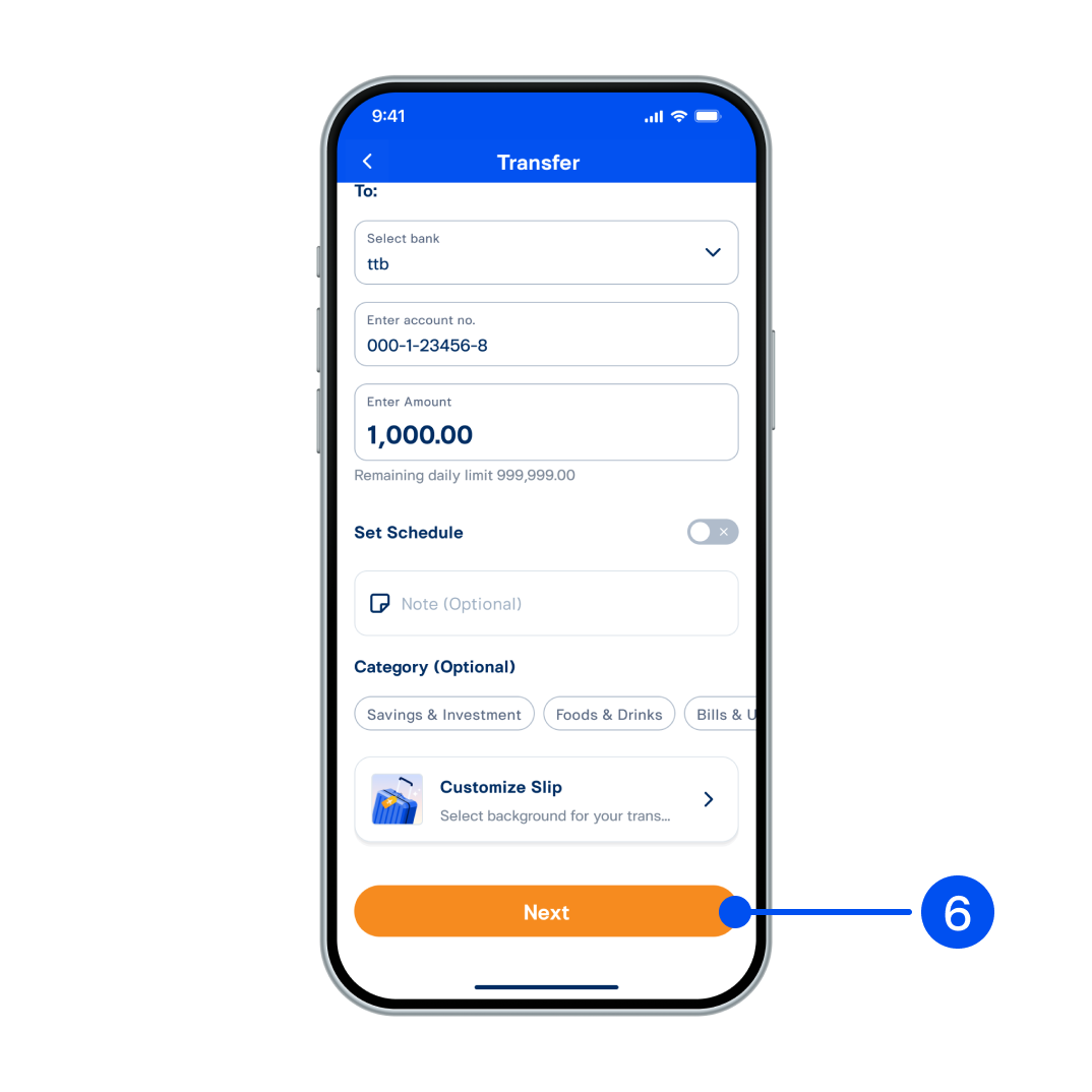 3. Enter transaction details and scroll down, then select “Customize Slip”.