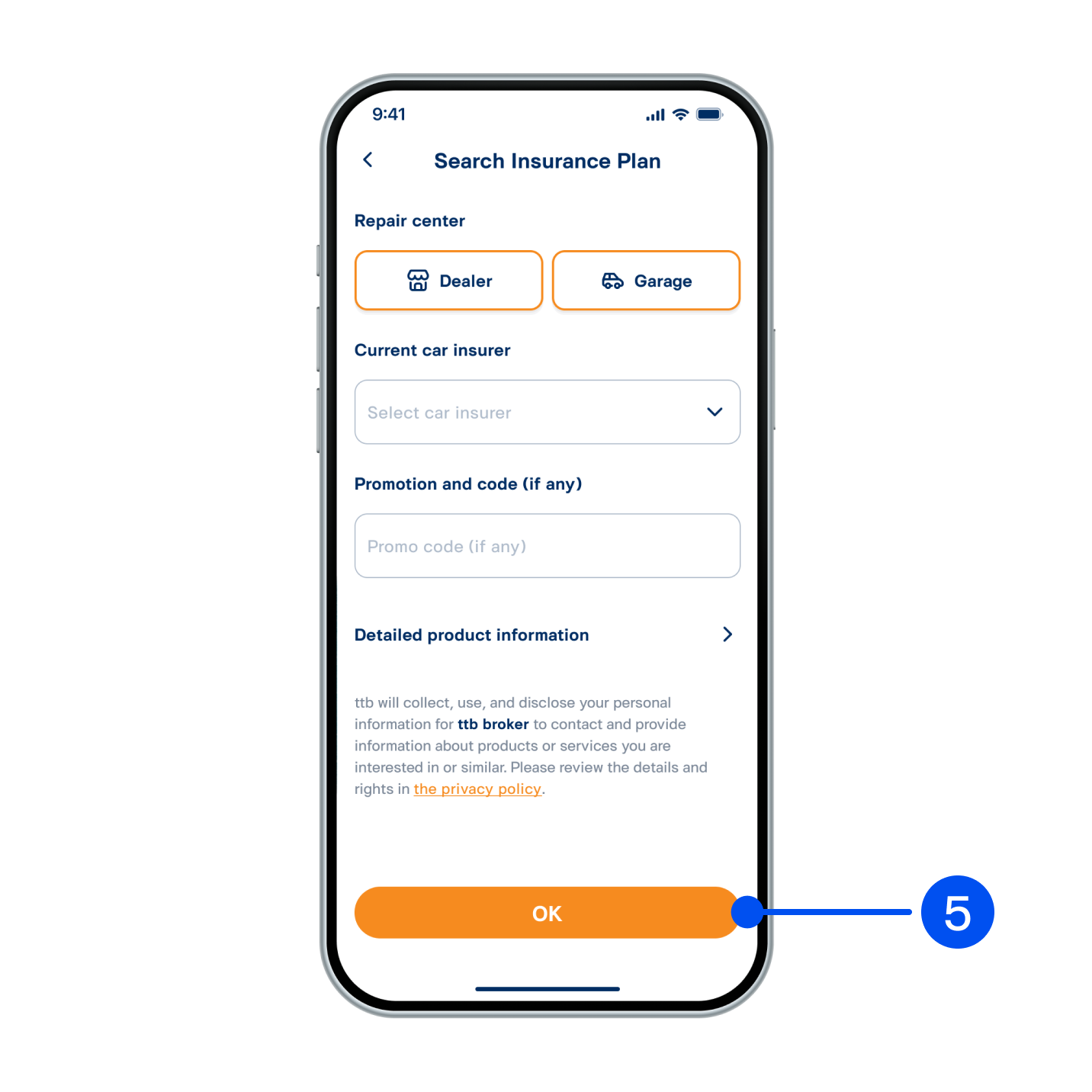 5. Enter information to find insurance, then select “OK”.