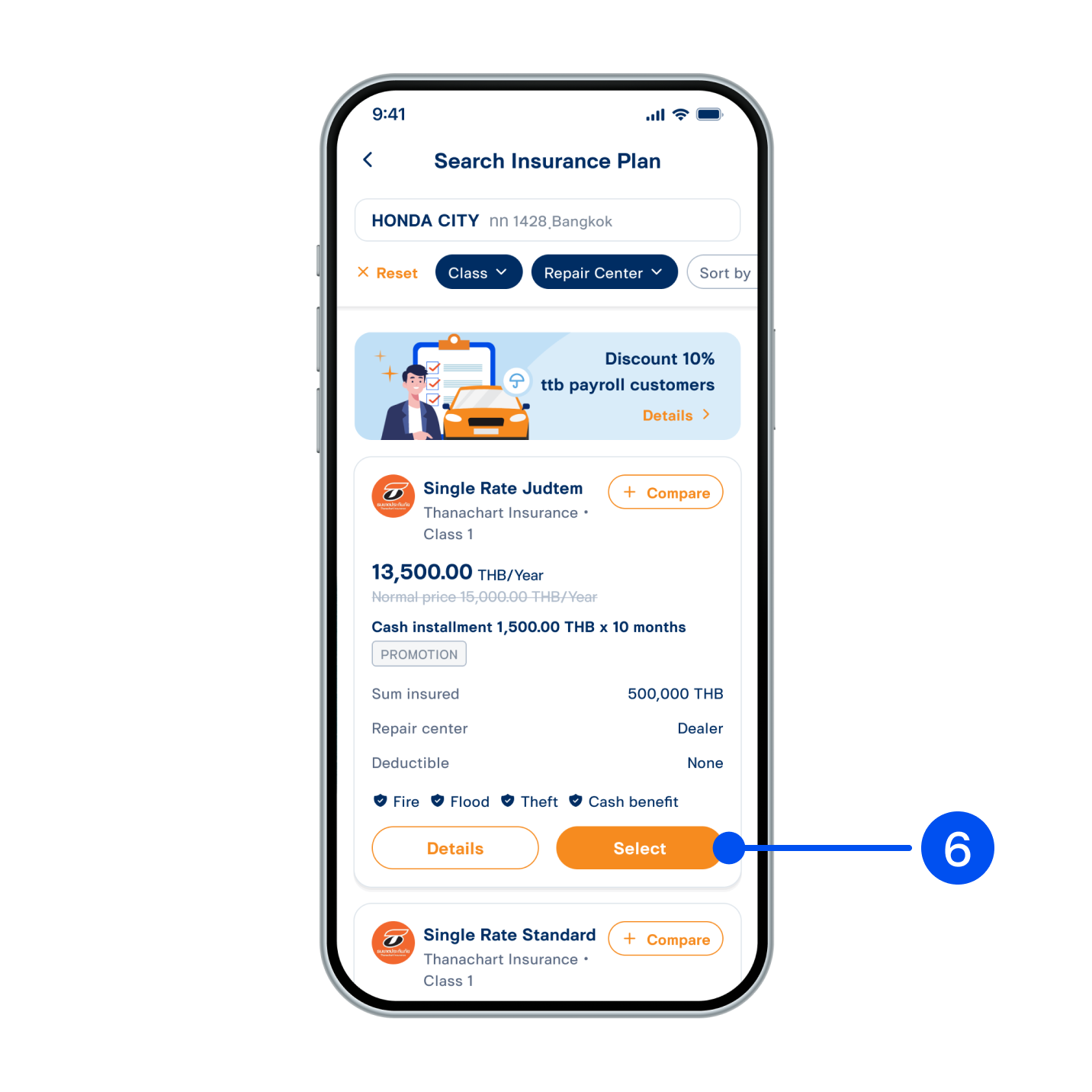 6. The list of insurance plans will be displayed, then “Select” in your desired plan.