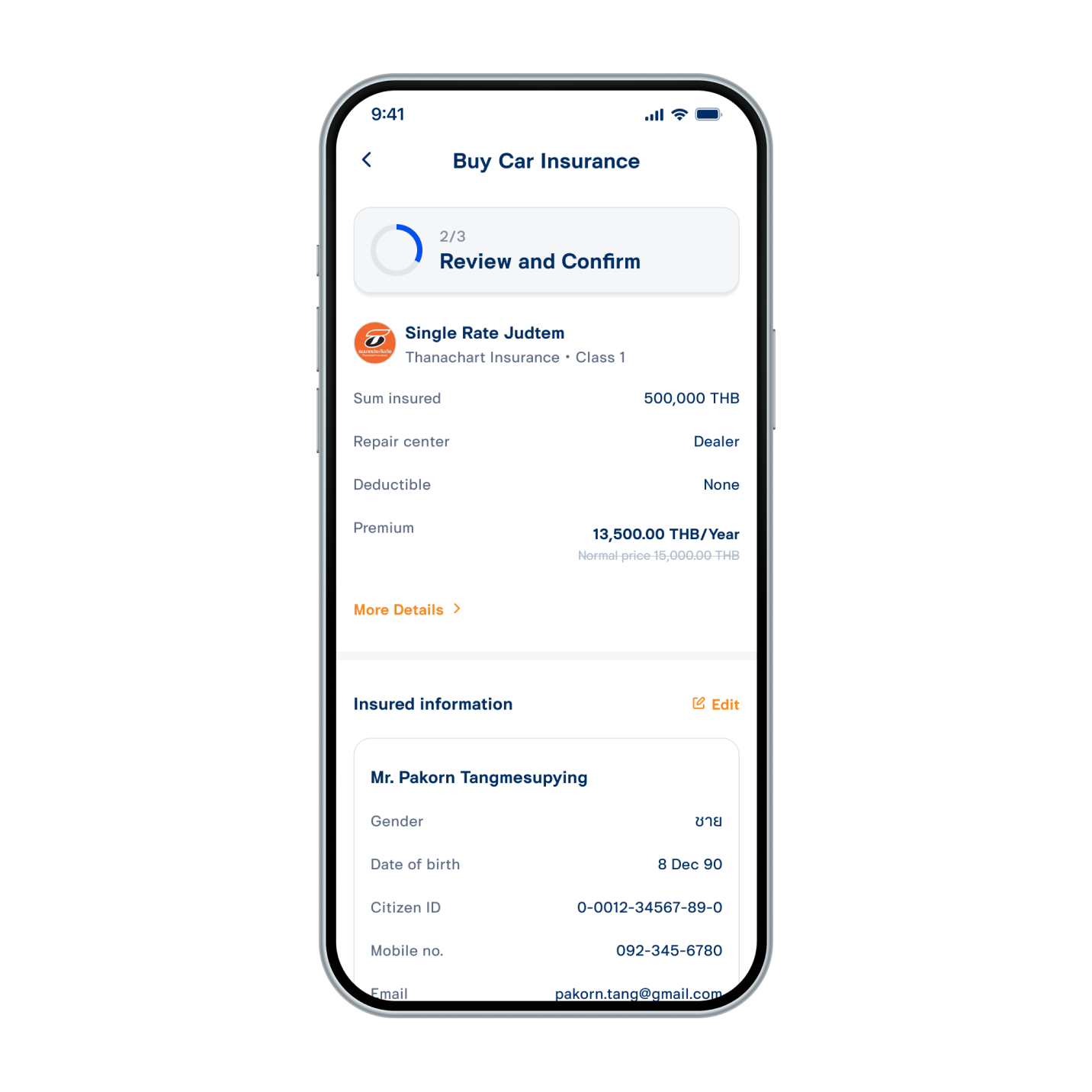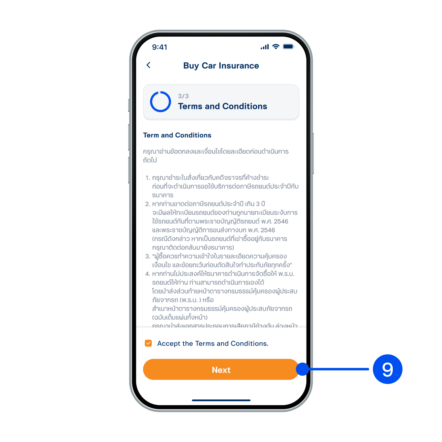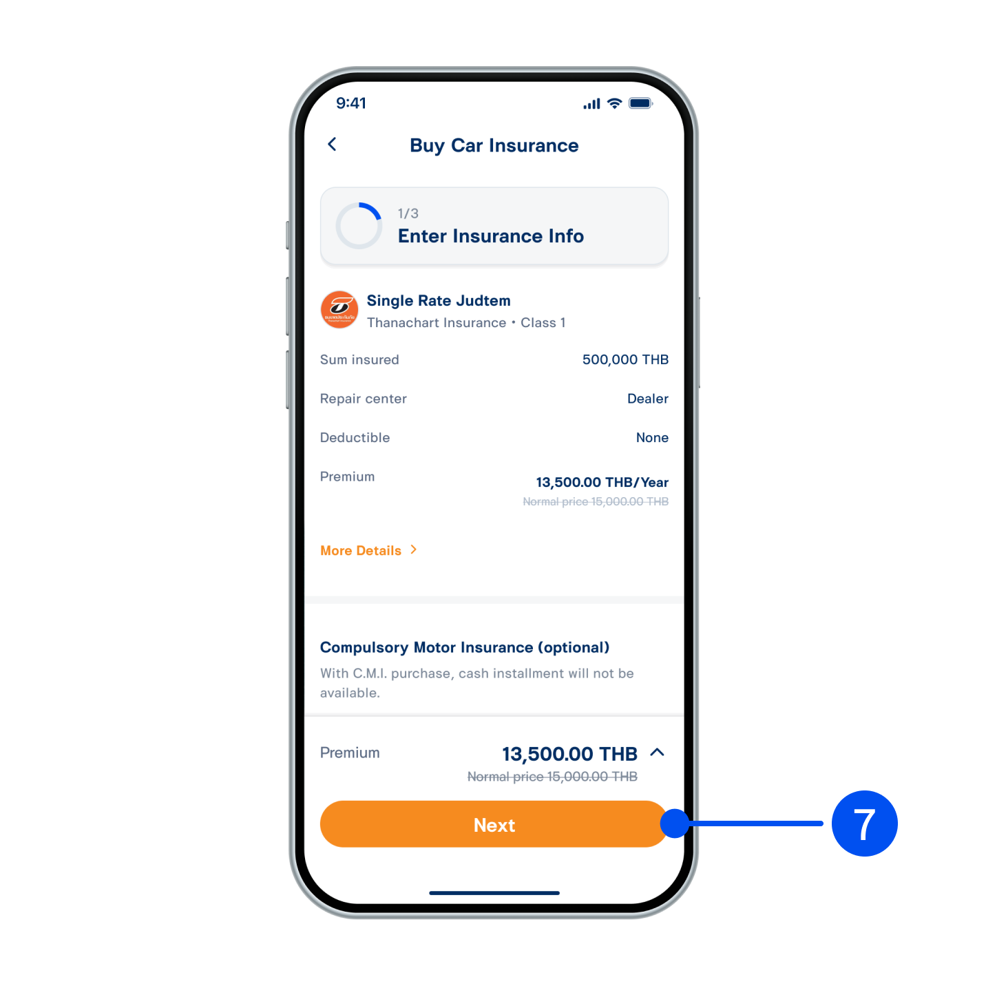 7. Enter information to buy insurance, then select “Next”.