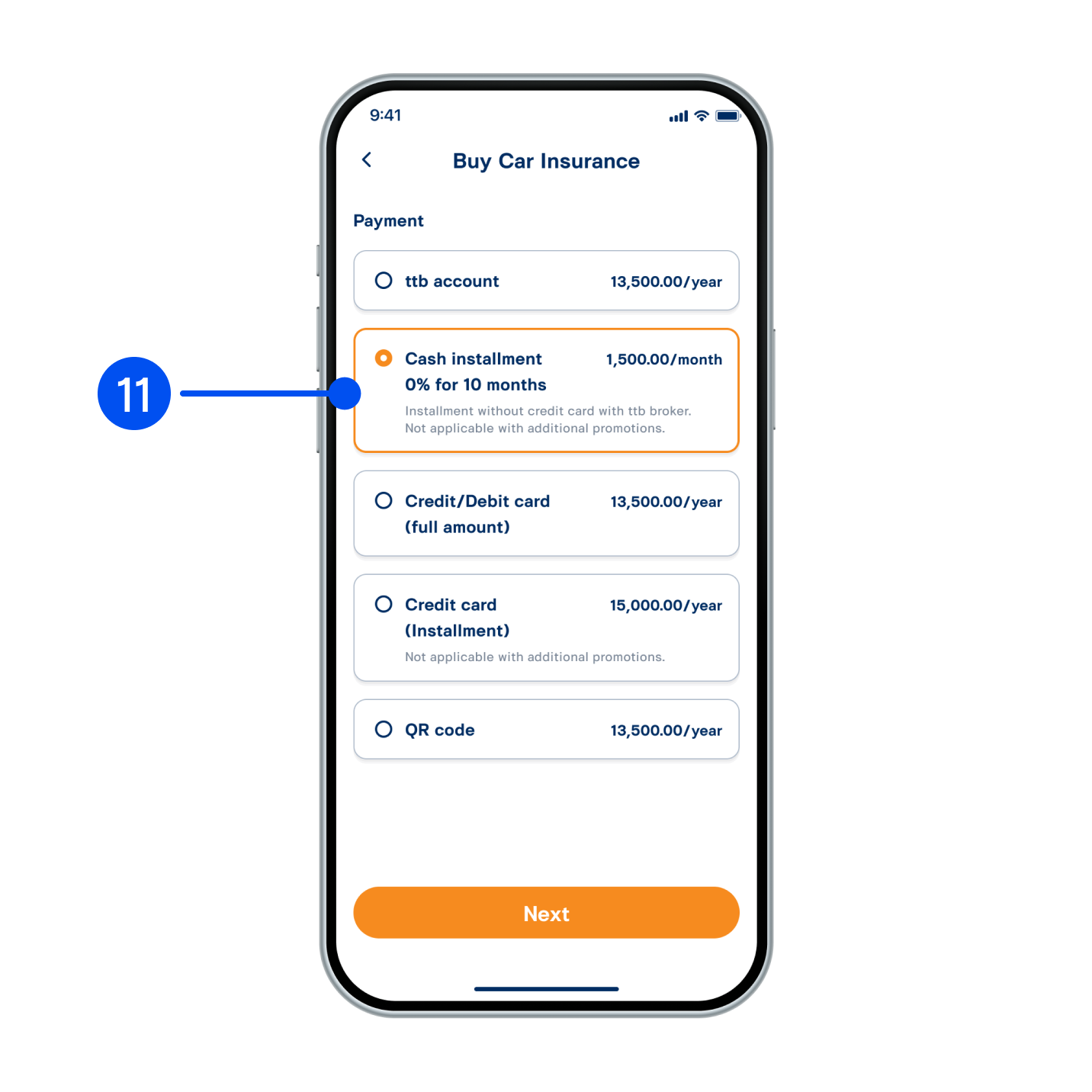 11. Select payment method, then select “Next” to proceed.