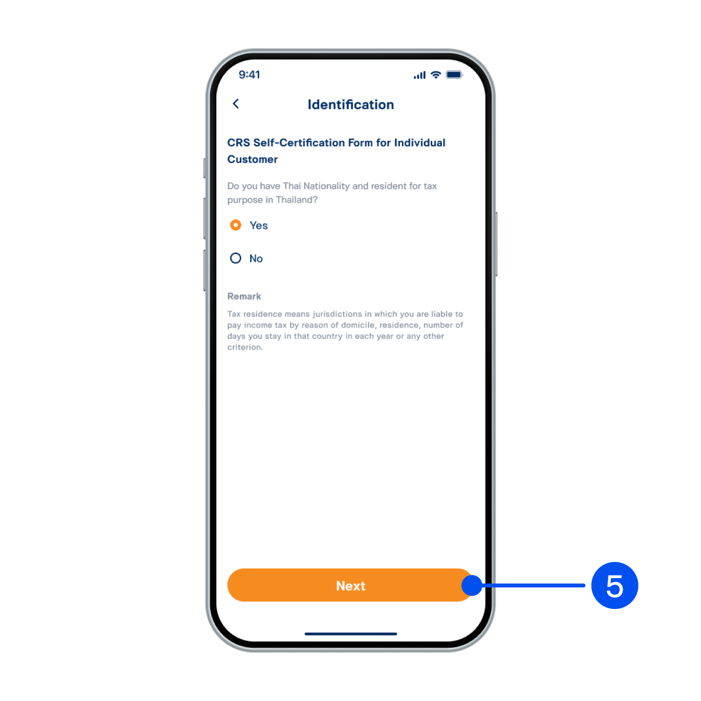 5. Provide an answer for CRS Self-Certification form, then select “Next”.