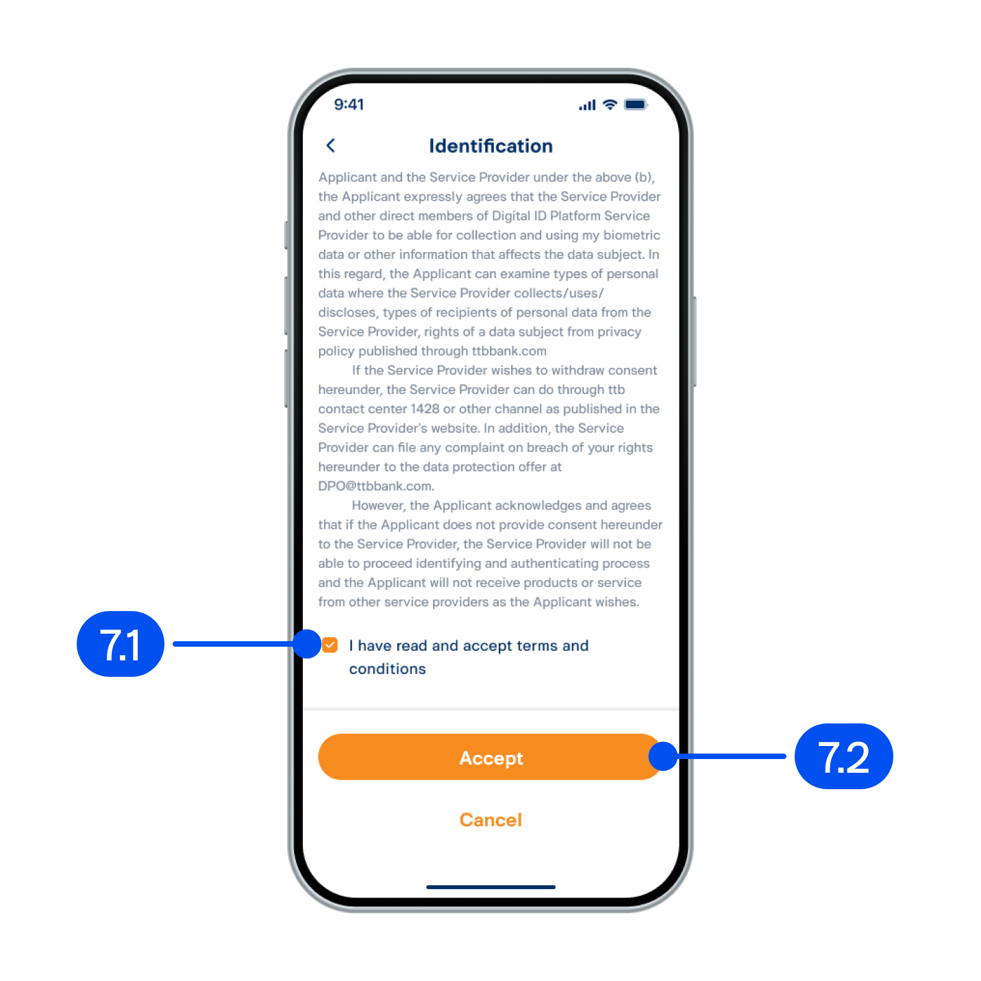 7. Read consent form for the Bank to collect/use/disclose biometric data.
