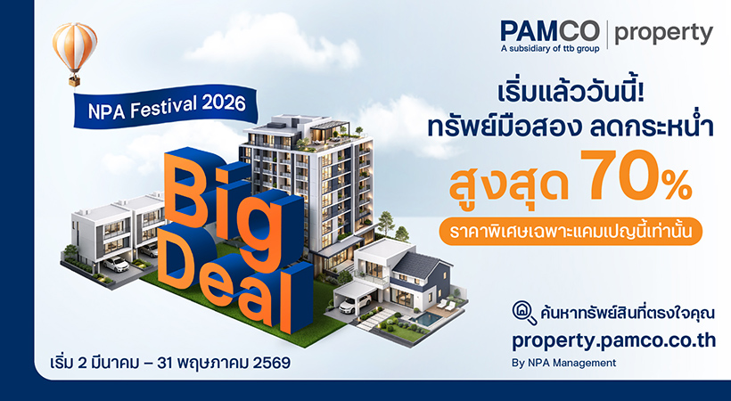 ทีทีบีและ PAMCO จัดมหกรรมลดราคาพิเศษ “Big Deal NPA Festival 2026” ลดราคาสูงสุดถึง 70% พิเศษเฉพาะช่วงแคมเปญนี้เท่านั้น