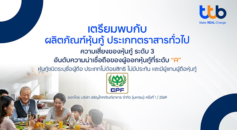 ทีเอ็มบีธนชาต หรือ ทีทีบี เป็นตัวแทนจัดจำหน่ายหุ้นกู้ ประเภทตราสารทั่วไป ออกโดย บริษัท เจริญโภคภัณฑ์อาหาร จำกัด (มหาชน) ซึ่งเป็นบริษัทที่ประกอบธุรกิจเกษตรอุตสาหกรรมและอาหารแบบครบวงจร ตั้งแต่การผลิตอาหารสัตว์ การเพาะพันธุ์สัตว์ การเลี้ยงสัตว์ การแปรรูปขั้นพื้นฐาน การผลิตอาหาร และอาหารพร้อมรับประทาน ตลอดจนกิจการช่องทางจำหน่ายผลิตภัณฑ์เนื้อสัตว์และอาหาร