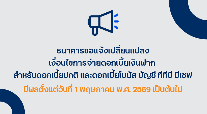 ธนาคารขอแจ้งเปลี่ยนแปลงเงื่อนไขการจ่ายดอกเบี้ยเงินฝากปกติและดอกเบี้ยโบนัส