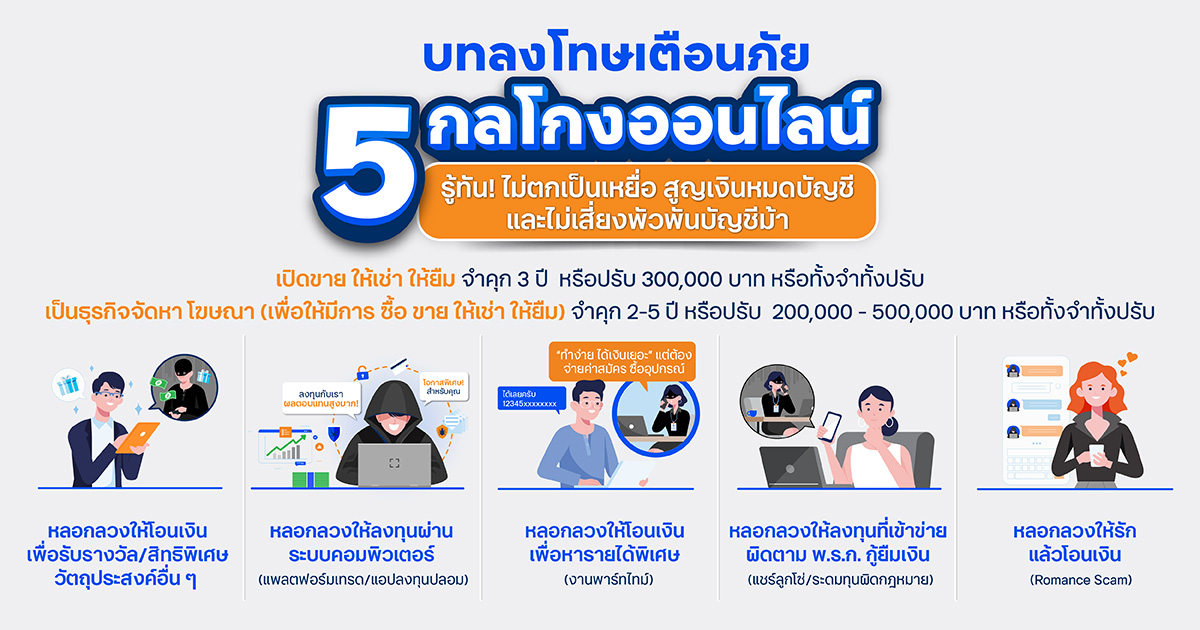 ข้อมูลจาก : ฟินทิป โดยทีทีบี และ ศูนย์ปราบปรามอาชญากรรมทางเทคโนโลยีสารสนเทศ สำนักงานตำรวจแห่งชาติ (ศปอส.ตร.)