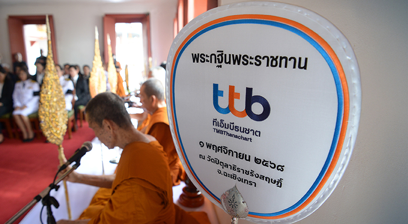 ทีเอ็มบีธนชาต ได้จัดพิธีถวายผ้าพระกฐินพระราชทาน ประจำปี 2568 ณ วัดปิตุลาธิราชรังสฤษฎิ์ จังหวัดฉะเชิงเทรา เมื่อวันที่ 1 พฤศจิกายนที่ผ่านมา โดยนับเป็นปีที่ 19 ของการจัดกิจกรรมกฐินพระราชทานของธนาคาร ในปีนี้ ธนาคารได้รับพระมหากรุณาธิคุณจาก พระบาทสมเด็จพระปรเมนทรรามาธิบดีศรีสินทรมหาวชิราลงกรณ พระวชิรเกล้าเจ้าอยู่หัว ทรงพระกรุณาโปรดเกล้าฯ พระราชทานผ้าพระกฐินให้ธนาคาร เพื่อน้อมถวายแด่พระสงฆ์จำพรรษากาลถ้วนไตรมาส ณ วัดปิตุลาธิราชรังสฤษฎิ์ จ.ฉะเชิงเทรา