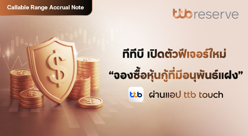 สำหรับลูกค้าที่เคยลงทุนในหุ้นกู้ที่มีอนุพันธ์แฝงกับทีทีบี (Structured Notes) สามารถลงทุนเพิ่มเติม และตรวจสอบพอร์ตการลงทุนสะดวกยิ่งขึ้นผ่านแอป ttb touch ได้แล้ววันนี้ คลิกhttps://www.ttbbank.com/link/ttbreserve/stn-touch หรือ สอบถามรายละเอียดเพิ่มเติมได้ที่ ttb ทุกสาขา หรือที่ปรึกษาทางด้านการเงินและการลงทุนของท่าน หรือโทร. 1428 กด # 4 เพื่อขอรับคำแนะนำก่อนลงทุน (จันทร์ – ศุกร์ เวลา 9:00 – 17:30 น. ยกเว้นวันหยุดธนาคาร)