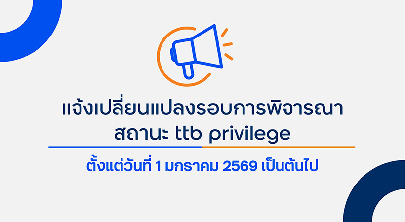 สำหรับลูกค้าที่มีสถานะ ttb privilege ได้แก่ สถานะ Bronze, Silver, Gold, Platinum และ Diamond ธนาคารขอแจ้งการปรับรอบพิจารณาการคงสถานะเดิม หรือปรับสถานะลง ปีละ 2 ครั้ง ในวันที่ 1 ม.ค. และ 1 ก.ค. ของทุกปี โดยจะมีผลตั้งแต่วันที่ 1 ม.ค. 69 เป็นต้นไป