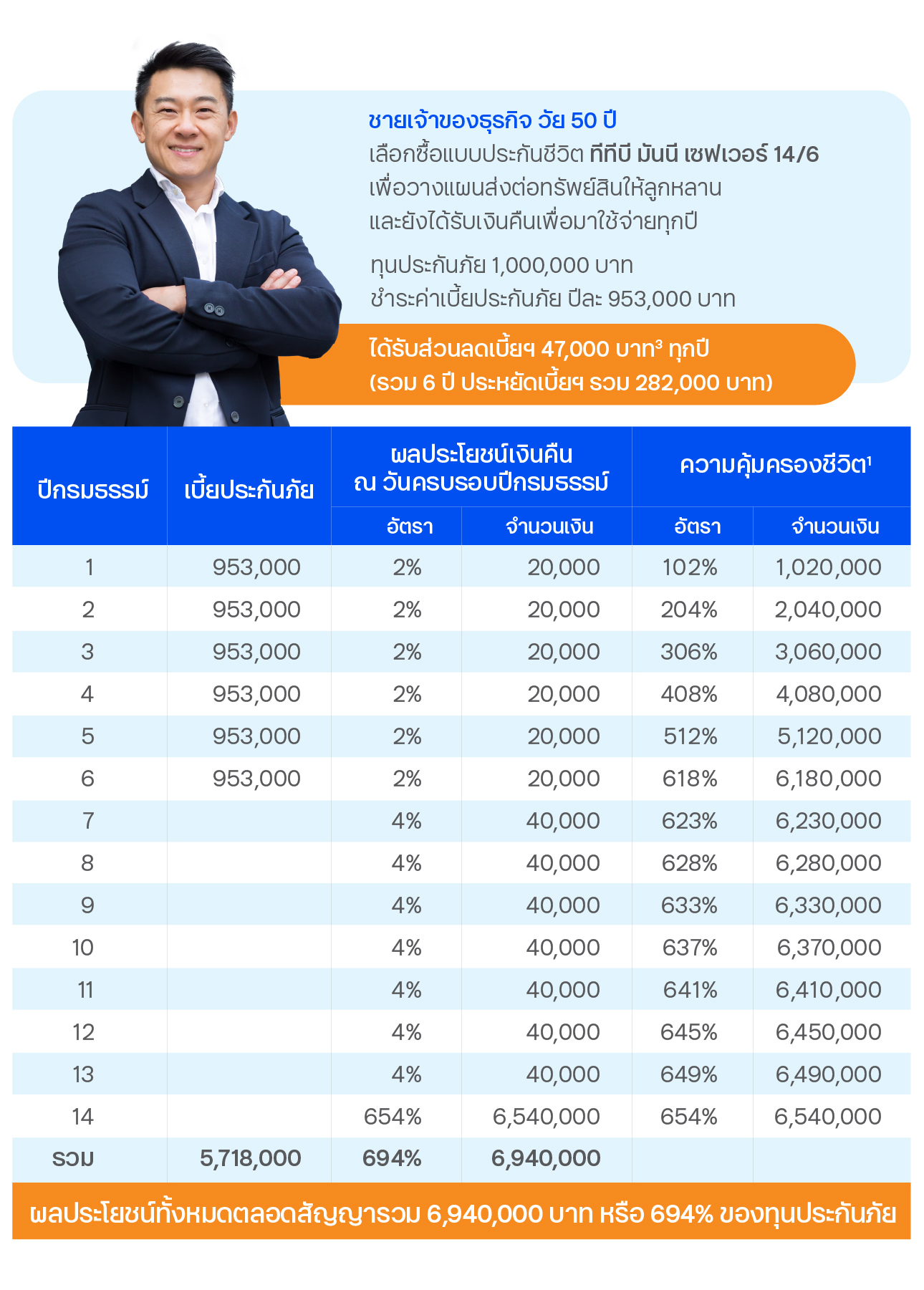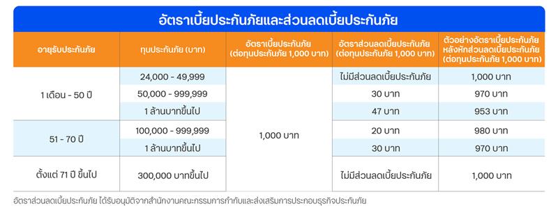 - ผู้ขอเอาประกันภัยควรศึกษาและทำความเข้าใจรายละเอียดความคุ้มครองและเงื่อนไข ก่อนตัดสินใจซื้อทุกครั้ง เอกสารนี้เป็นเพียงเอกสารประกอบการเสนอขายเท่านั้น ความคุ้มครองและเงื่อนไขเป็นไปตามที่กรมธรรม์กำหนด