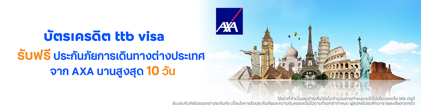 - รับฟรีประกันภัยการเดินทางต่างประเทศจาก AXA นานสูงสุด 10 วัน
