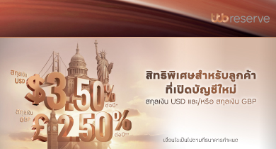โปรโมชันพิเศษสำหรับลูกค้าที่เปิดบัญชี FCD e-Saving สกุลเงิน USD, GBP ใหม่ผ่านแอป ttb touch รับดอกเบี้ยสูงสุด 3.50% ต่อปี