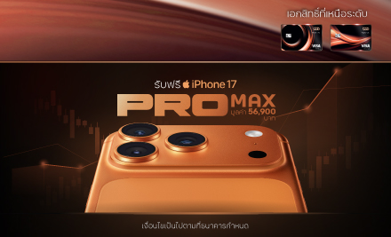 รับฟรี iPhone17 Pro Max มูลค่า 56,900 บาท เพียงมียอดเงินลงทุนสุทธิ ในผลิตภัณฑ์การลงทุนที่ร่วมรายการ ตามยอดเงินลงทุนและเงื่อนไขที่ธนาคารกำหนด