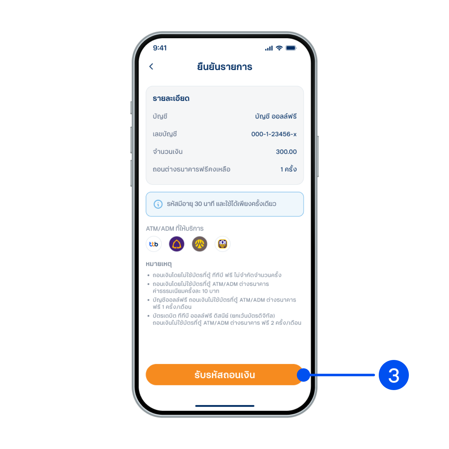 3. ตรวจสอบรายละเอียด จากนั้นกด “รับรหัสถอนเงิน”