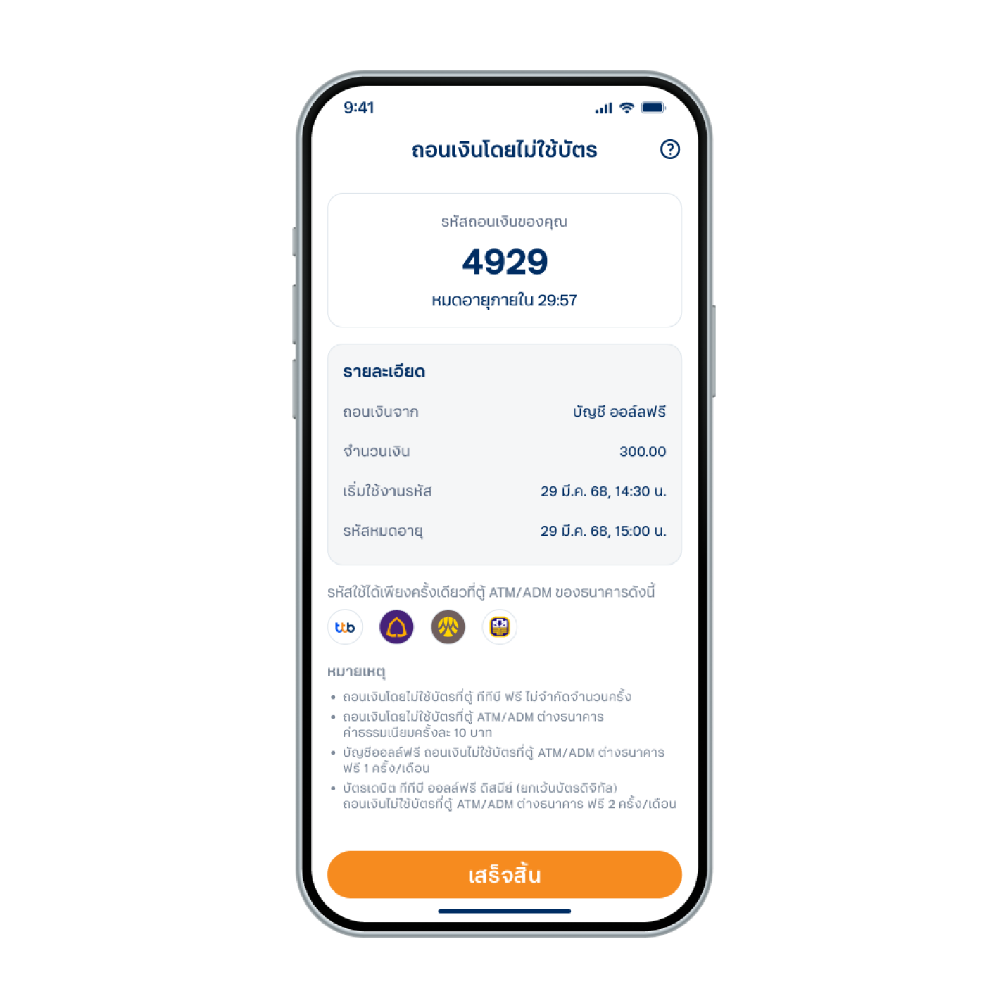 5. นำรหัสถอนเงิน ไปใช้ในการถอนเงินหน้าตู้ ทีทีบี เอทีเอ็ม ได้ทันที