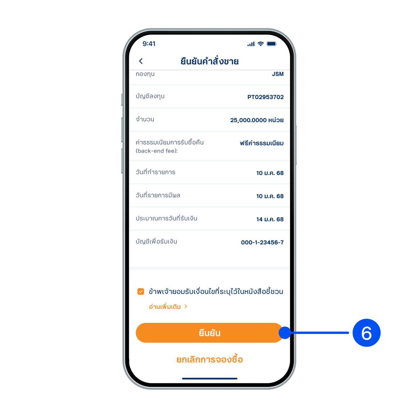 6. ตรวจสอบรายการและยอมรับข้อตกลงในการทำรายการ จากนั้นเลือก “ยืนยัน”