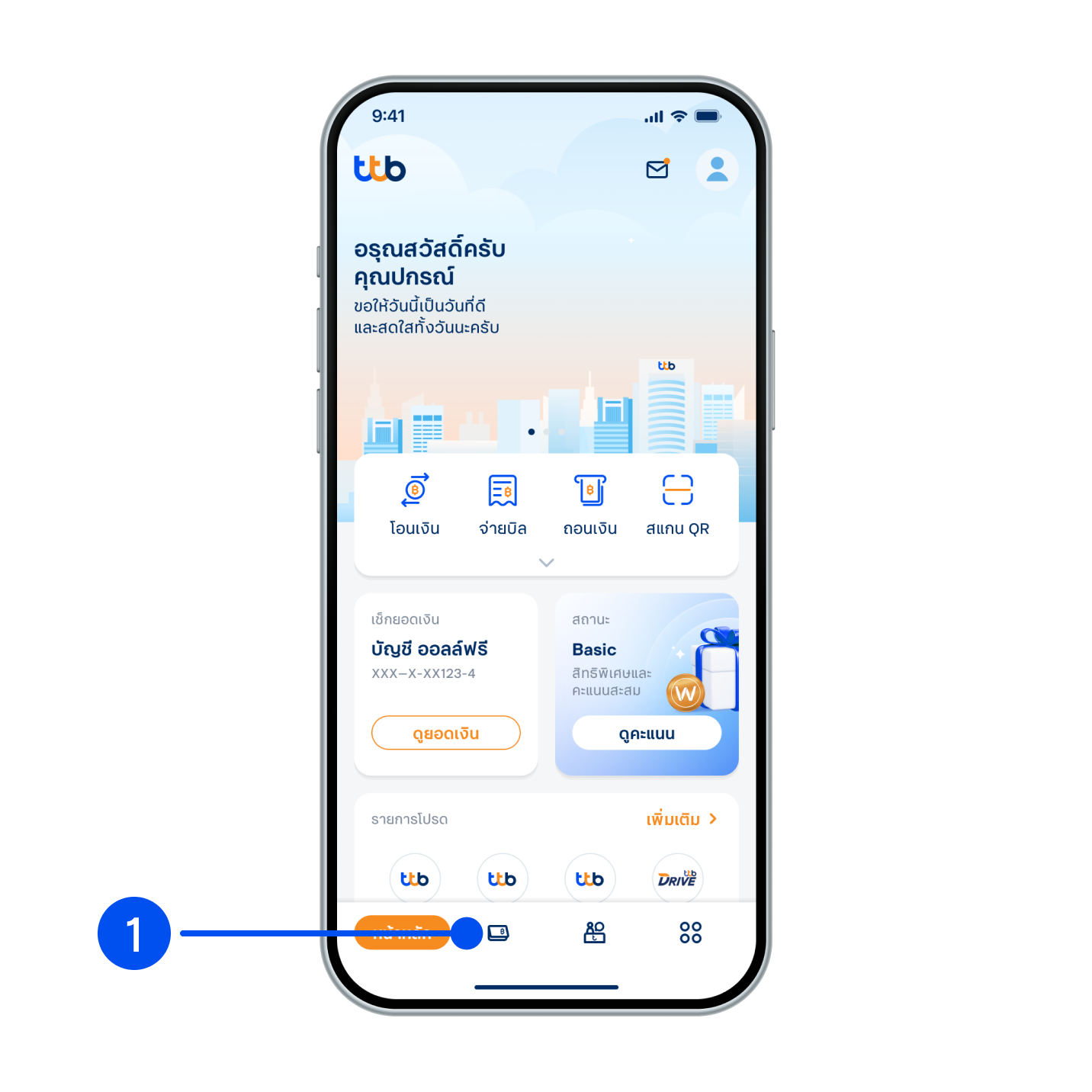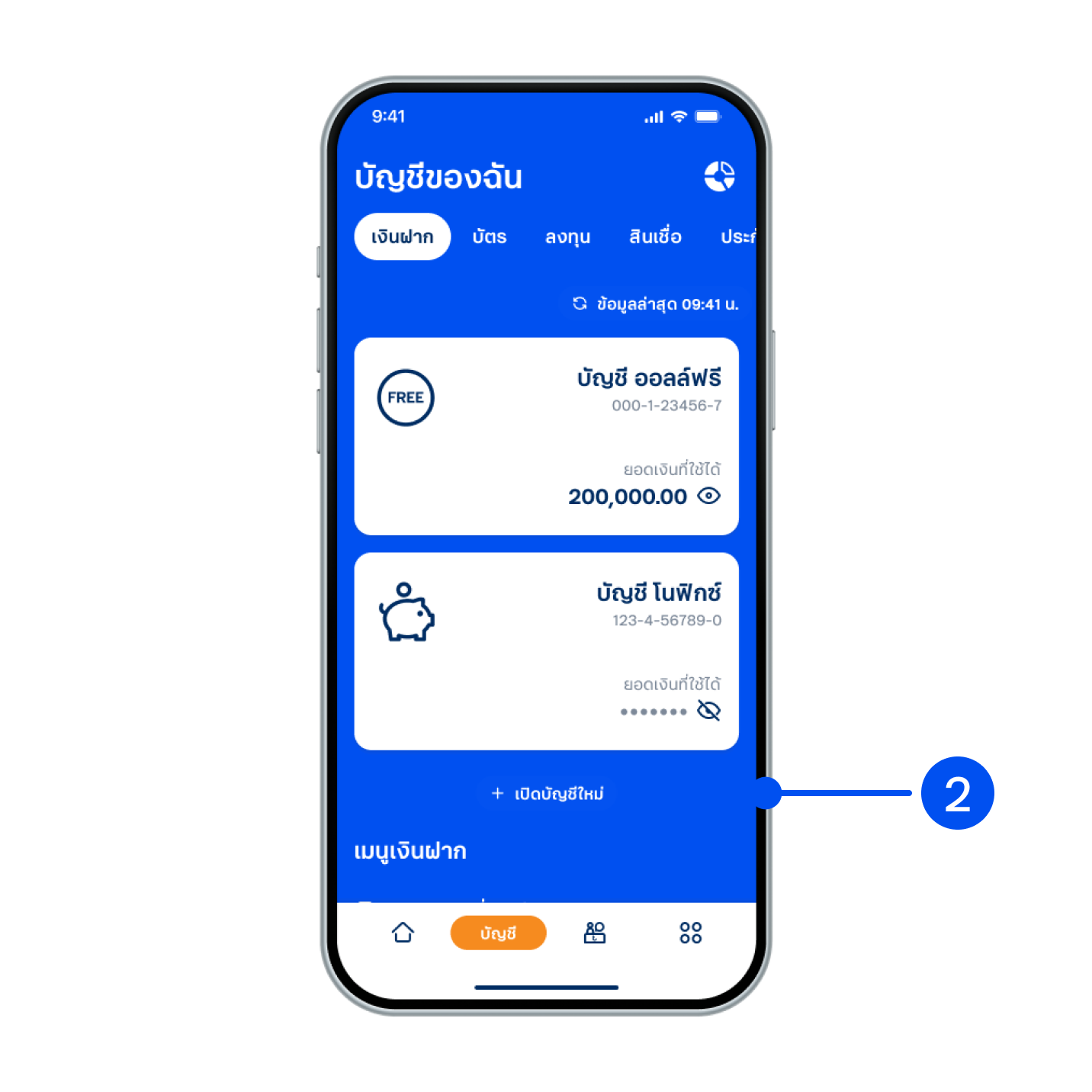 1. เลือกเมนู “บัญชี” ลำดับที่ 2 ของเมนูด้านล่าง