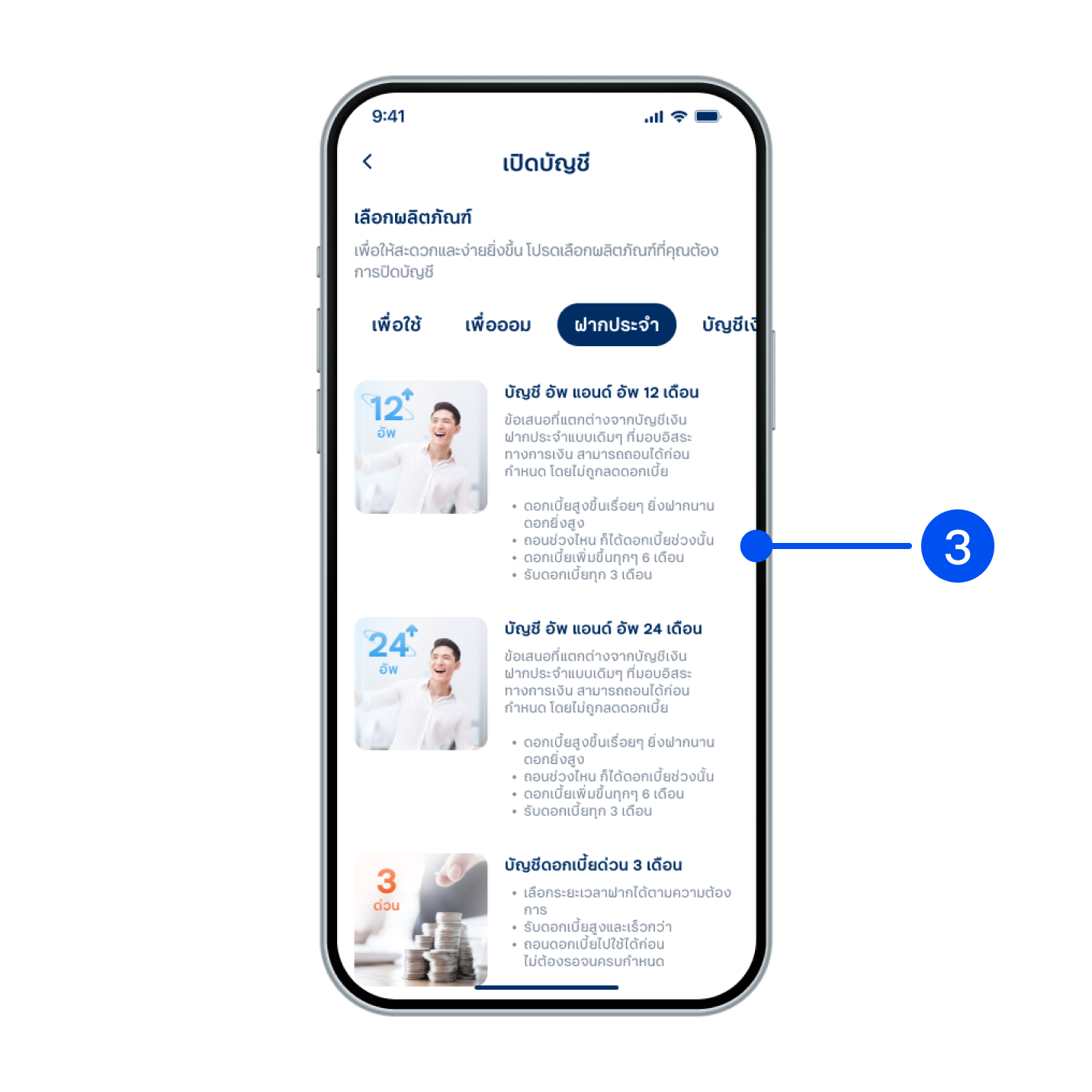 12.1) เลือกบัญชีเพื่อหักเงินฝากครั้งแรก