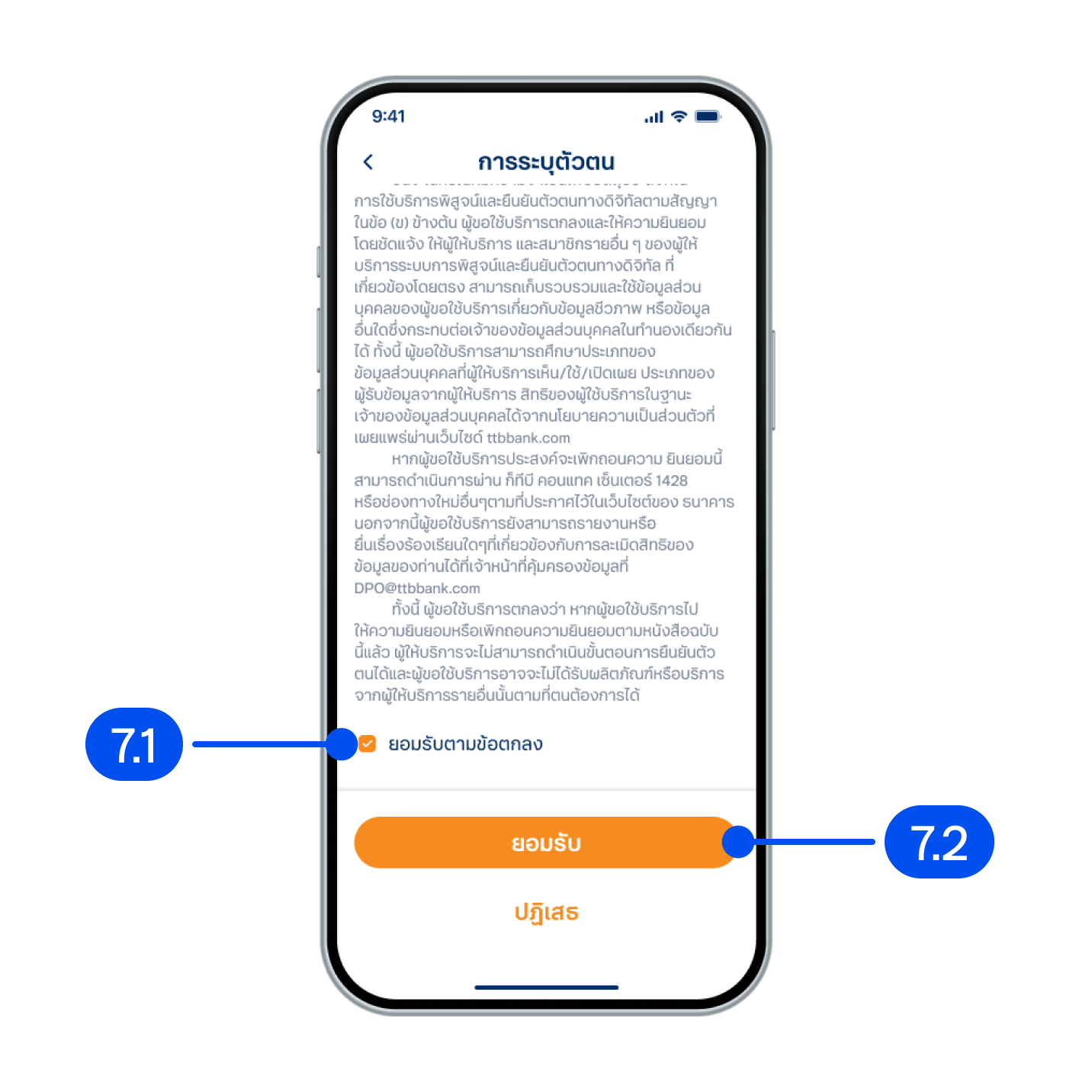 7. อ่านหนังสือยินยอมให้ธนาคารเก็บ/ใช้/เปิดเผยข้อมูลทางชีวภาพ