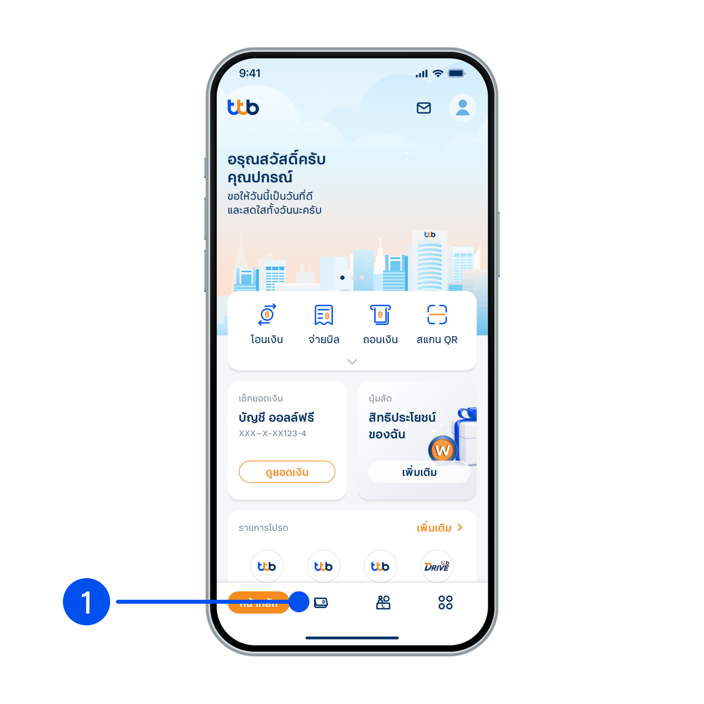 1. เลือกเมนู “บัญชี” ลำดับที่ 2 ของเมนูด้านล่าง